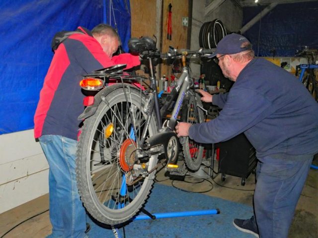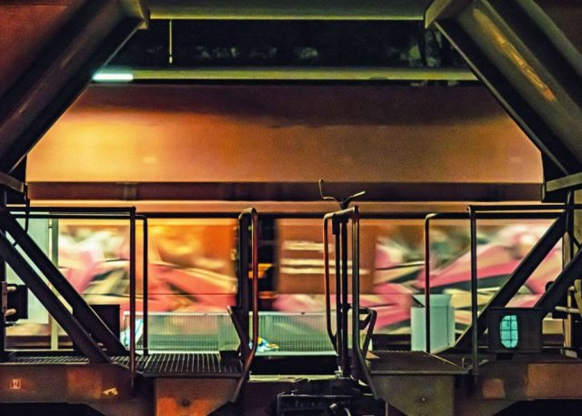 Technik und Verkehr ist Teil unseres täglichen Lebens. Die vorgestellten Fotografien zeigten nicht nur den großen Überblick, sondern oftmals alltägliche Details, die der ungeübte Beobachter selten wahrnimmt. Die Bahn vor der Frankfurter Skyline, die sich im ruhig dahinfließenden Wasser des Main‘s spiegelt oder der Stoffhase als Sozius auf dem komfortablen Motorrad. Während eines erlebnisreichen Ausfluges bannt der Fotograf die historische Zapfsäule, die den Liter Benzin für 38Pfennig abgegeben hat, auf seine digitale Platte. Bewegungsunschärfe zeigt die Aufnahme durch den Güterzug auf den dahinter liegenden Bahnsteig. Immer wieder werden auch Aufnahmen „nur“ in Schwarz-Weiß gezeigt, die besondere Lichtsituationen betonen können. So wie bei der Aufnahme eines Stücks Straßenbahnschiene im regennassen Pflaster der Mannheimer Innenstadt. Aber auch zuhause finden sich Motive, wie die Aufnahme der ehrenamtlichen Fahrradtechniker der Fahrradwerkstatt in der Güterhalle am Heidesheimer Bahnhof zeigt, die ein gespendetes Rad wieder für den Straßenverkehr herrichten.