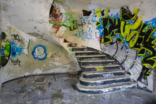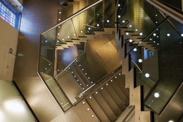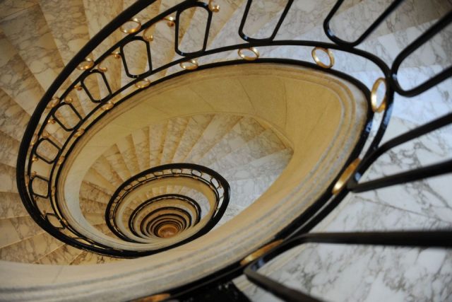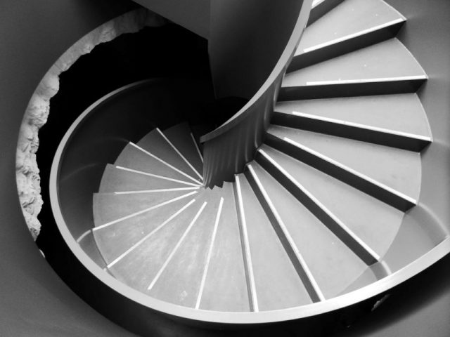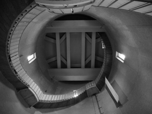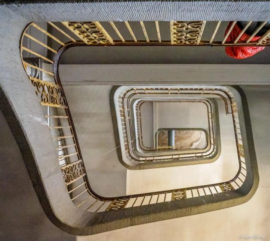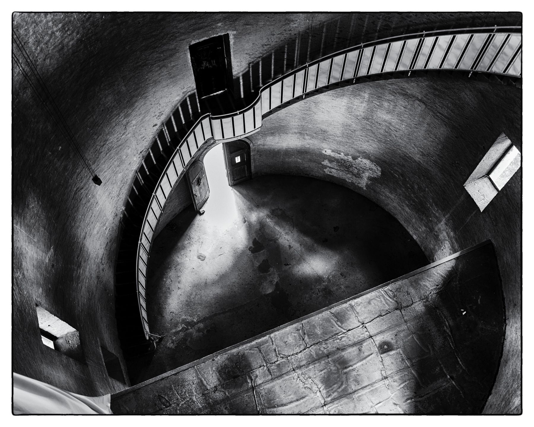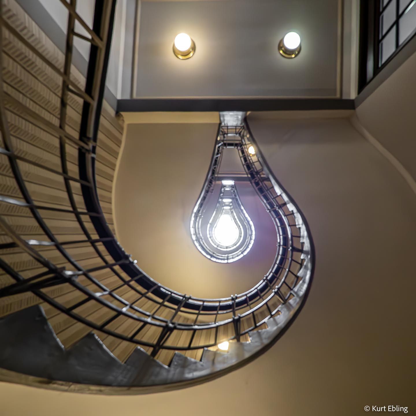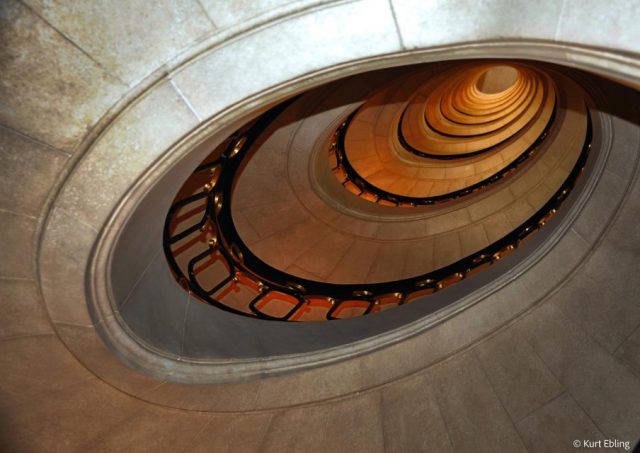 Ein beliebtes Motiv sind die Innenaufnahmen in einem Treppenhaus, besonders in einem mit vielen Stockwerken. Es entstehen hoch interessante spiralförmige Ansichten (Treppe in Prag). Ist die Sichtachse nicht senkrecht, erscheinen ellipsenartige Kegel.