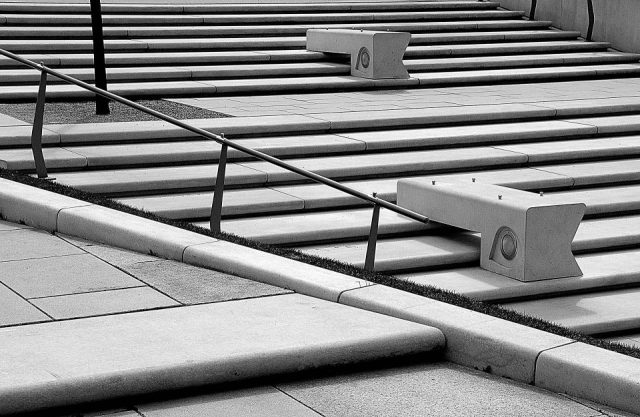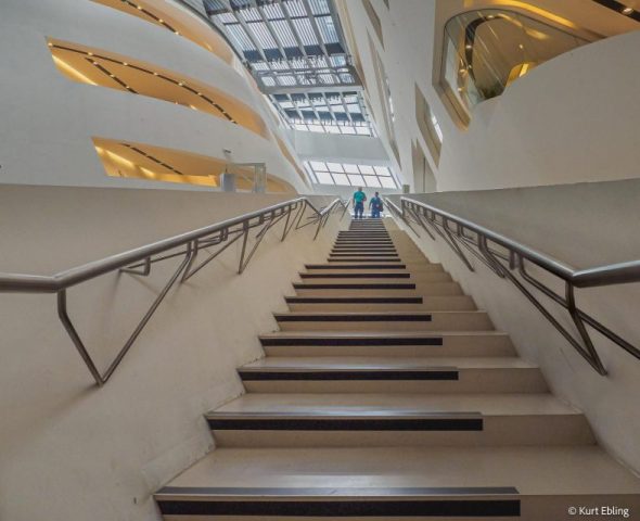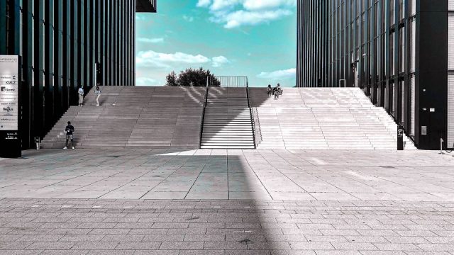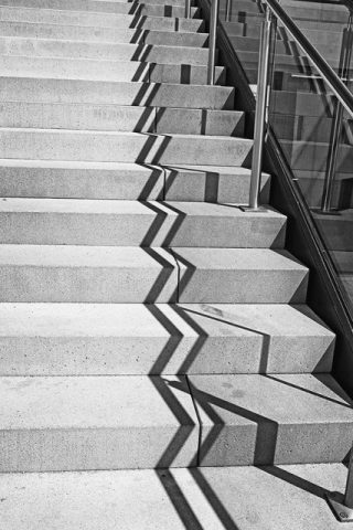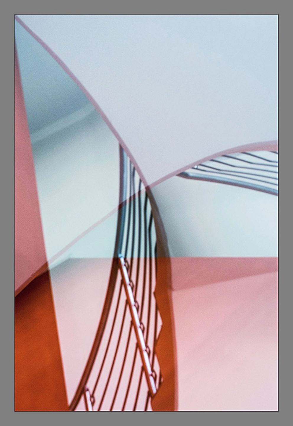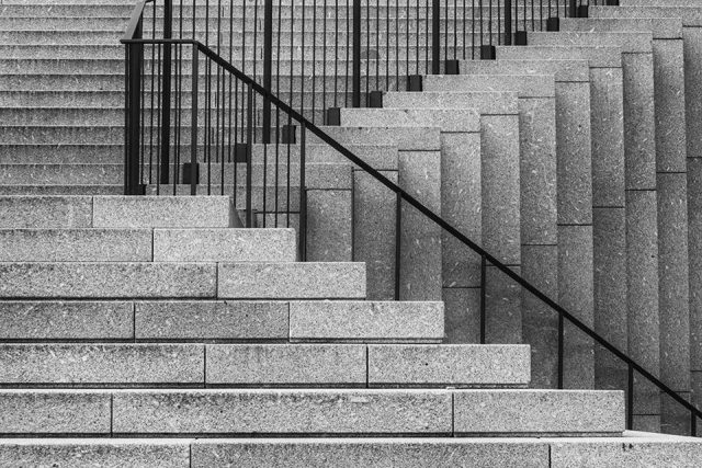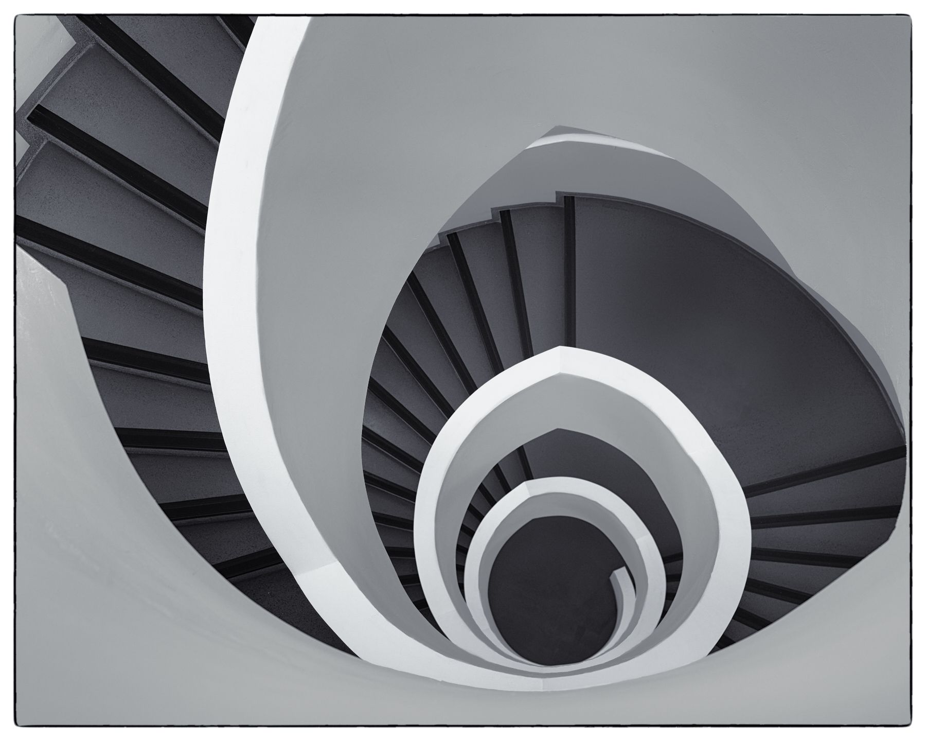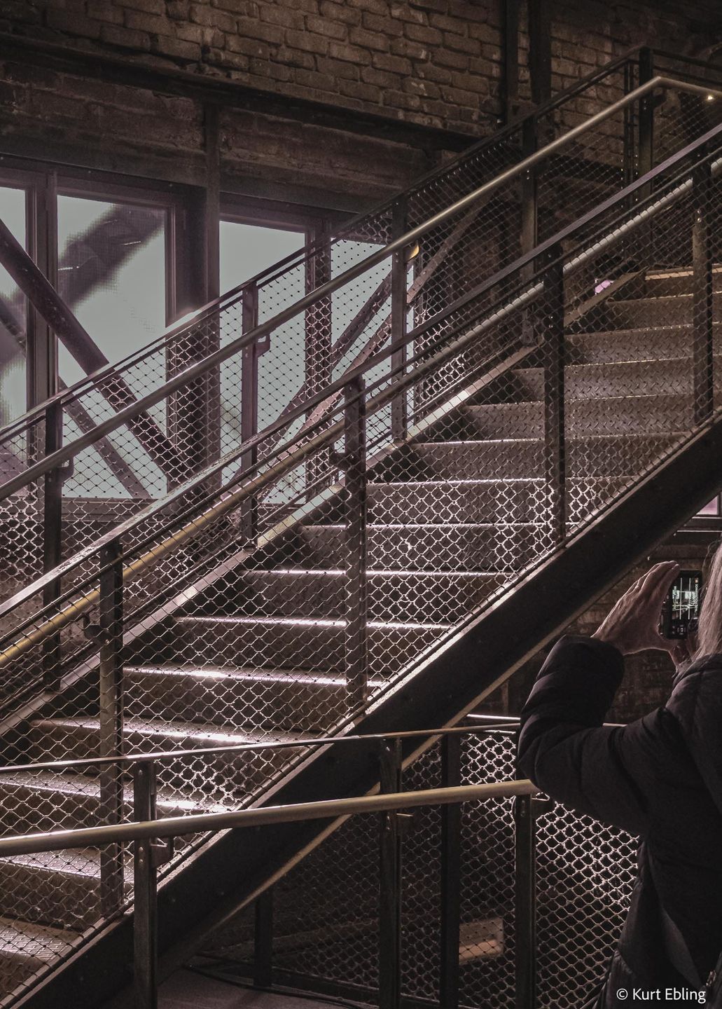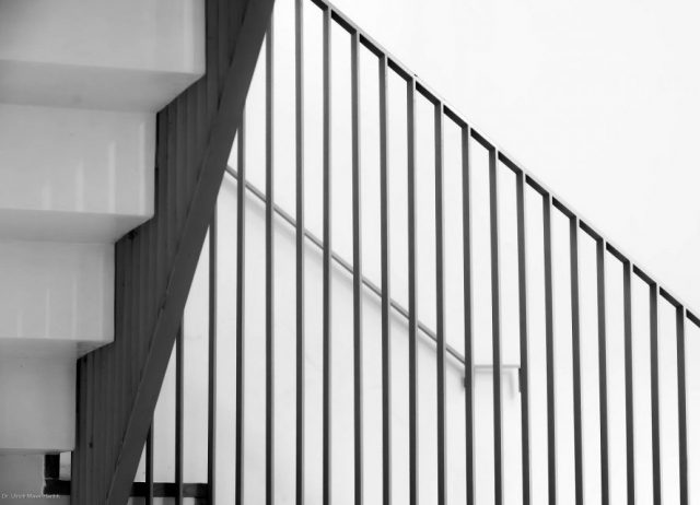 Die meisten Bilder reflektieren die grafischen Muster, die sich an und durch Treppen ergeben. In Schwarz-Weiß wird der Effekt noch verstärkt. Ein Beispiel ist die Aufnahme vom Fridtjof-Nansen-Platz.
