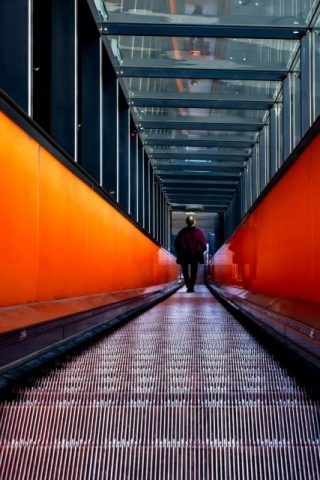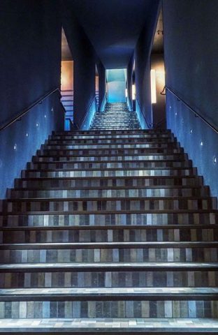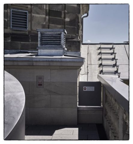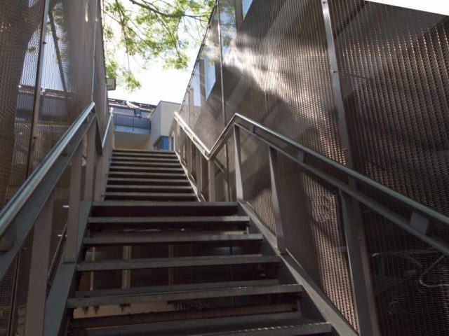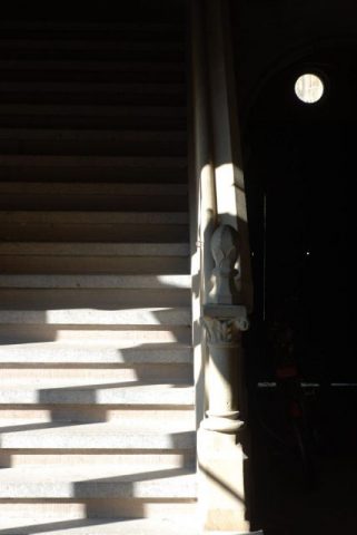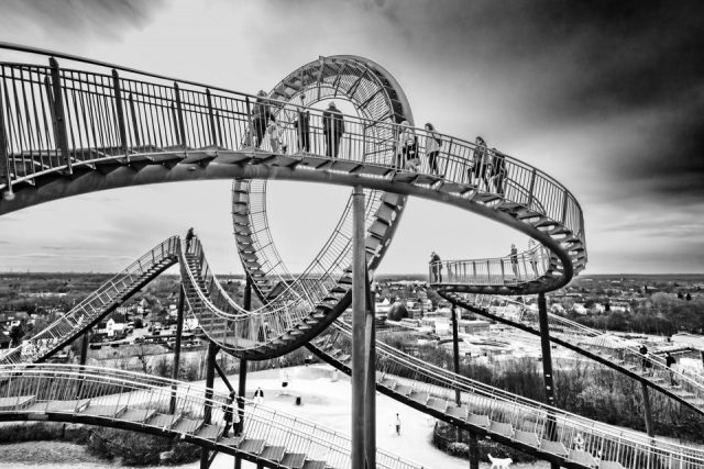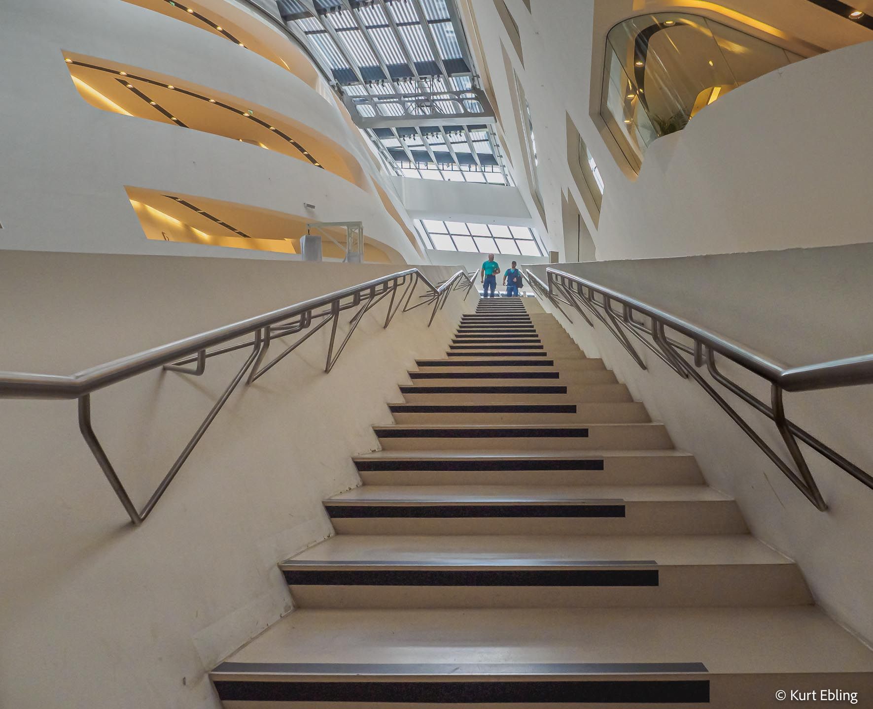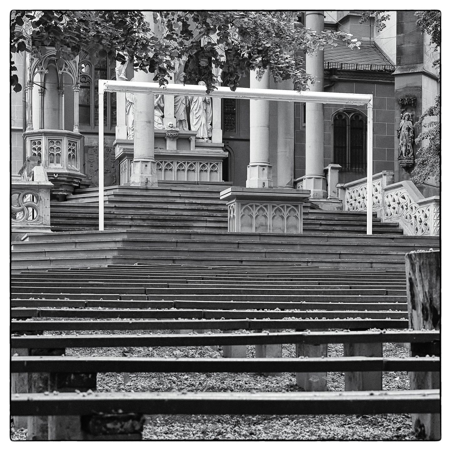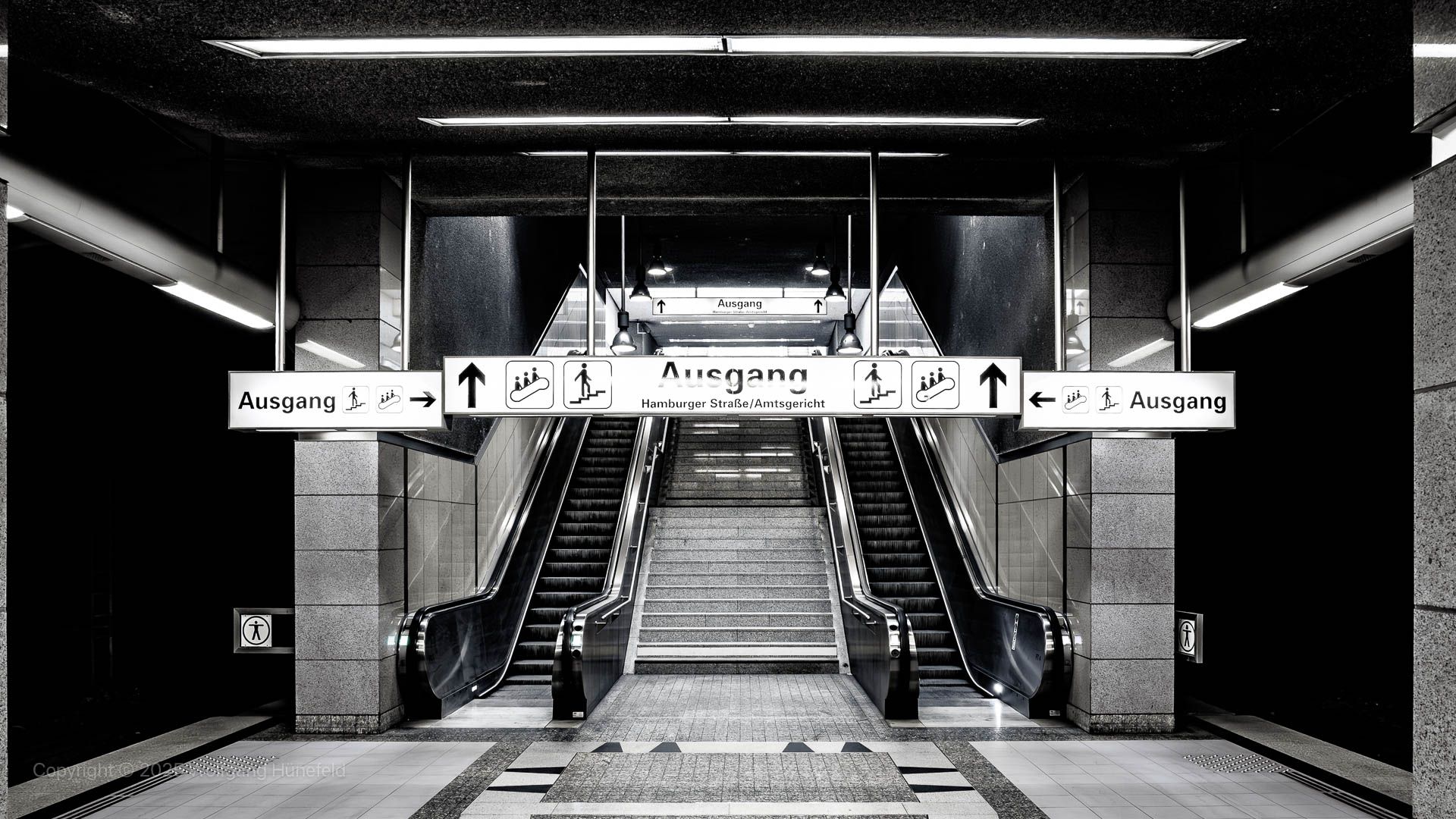 Die meisten Bilder reflektieren die grafischen Muster, die sich an und durch Treppen ergeben. In Schwarz-Weiß wird der Effekt noch verstärkt. Ein Beispiel ist die Aufnahme vom Fridtjof-Nansen-Platz.