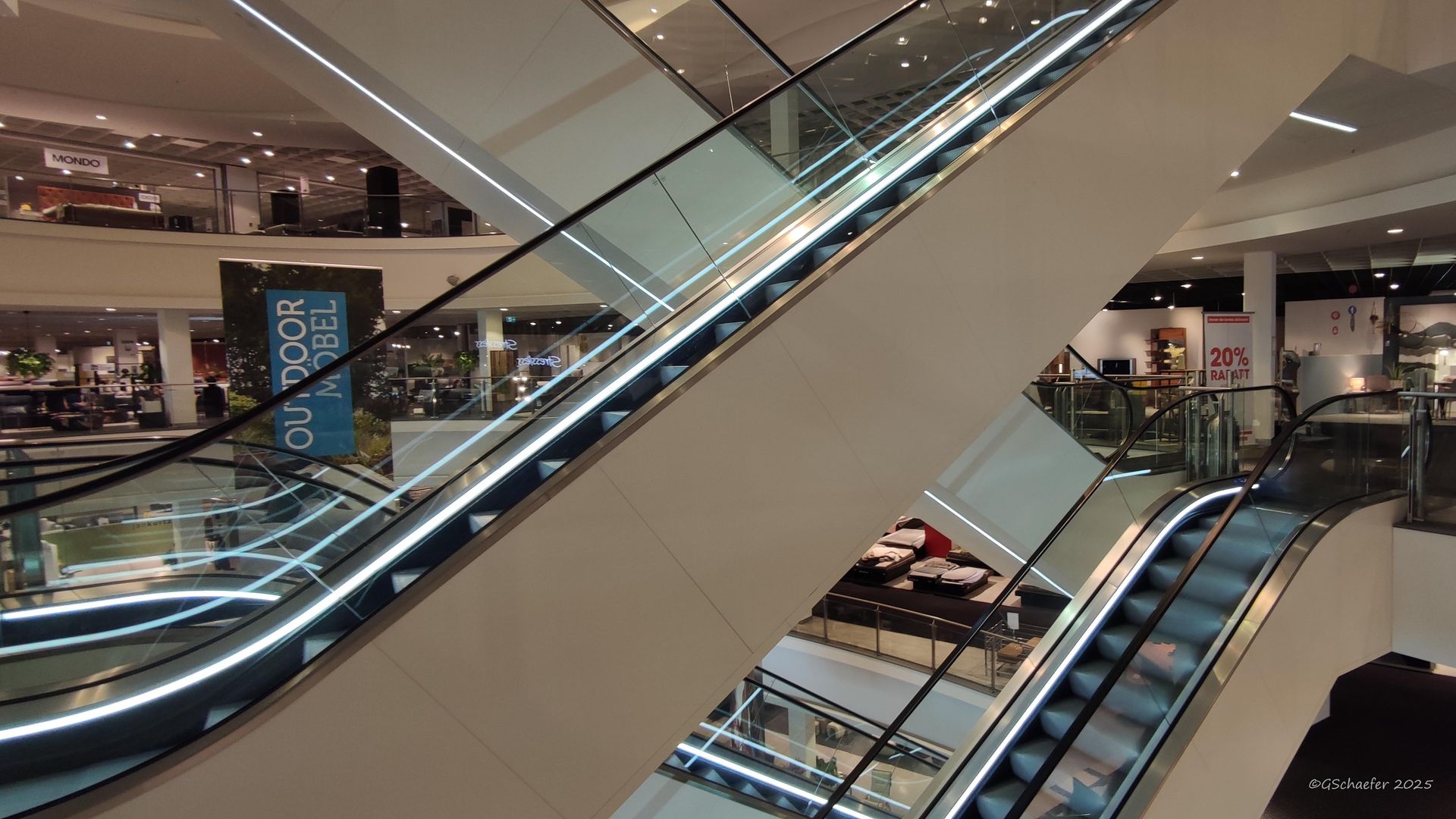 Rolltreppen gibt es seit über 100 Jahren und sind mittlerweile Standard in Kaufhäusern, Bahnhöfen und Flughäfen (Im Kaufhaus). Wendeltreppen hingegen wurden schon in der Antike gebaut.