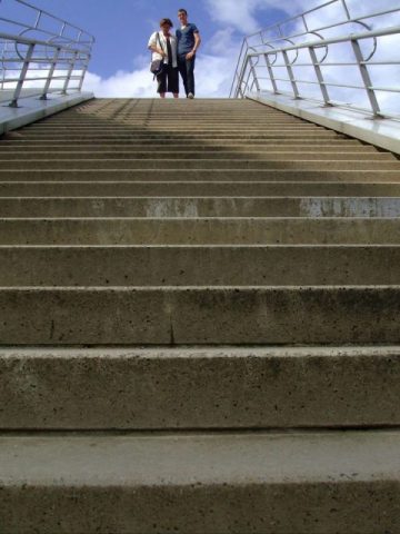 Vielfach sind Treppen monumental angelegt und wollen durch ihre Größe beeindrucken, schon an antiken Tempeln zu sehen. Diese Treppen laden auch eher zum Verweilen ein (Düsseldorf, Kein Aufgang).