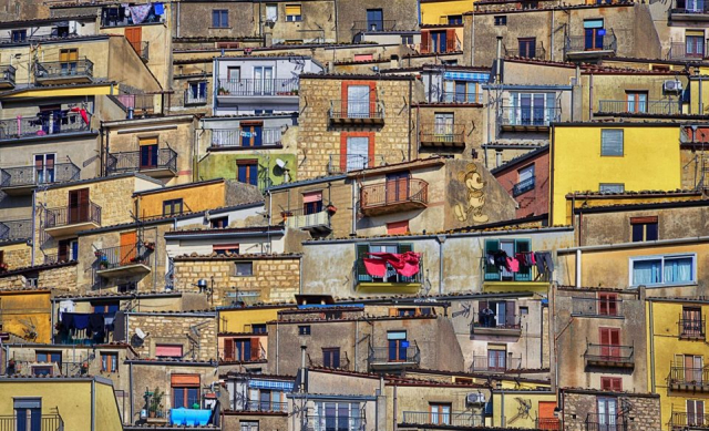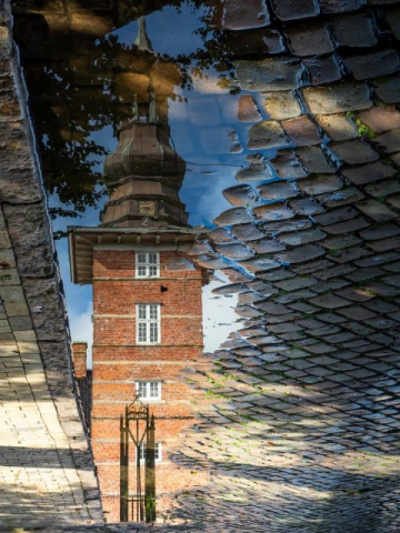 - Abstand kann helfen, um das gesamte Gebäude einzufangen. Weitwinkelobjektive sind in beengten Verhältnissen, wie z.B. in historischen Städten u.U. sinnvoll, vor allem wenn man später am Rechner stürzende Linien entfernen möchte und dazu genügend Fläche neben dem Objekt benötigt. Um Details oder Fassadenstrukturen zu betonen, hilft Nähe oder ein Teleobjektiv.