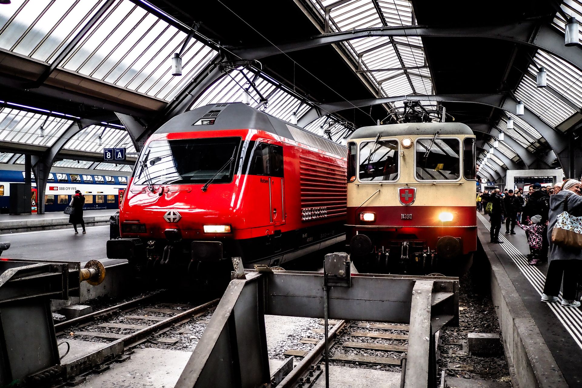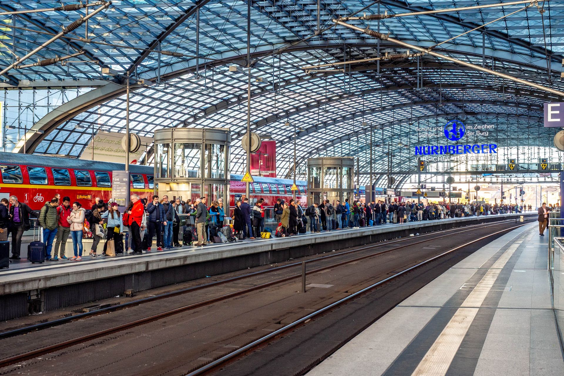 Heute sind Bahnhöfe Umstiegsorte für verschiedene Verkehrssysteme, aber auch Treffpunkte und Einkaufsstätten und damit in den Hauptzeiten stark frequentiert – wenn nicht gerade gestreikt wird.