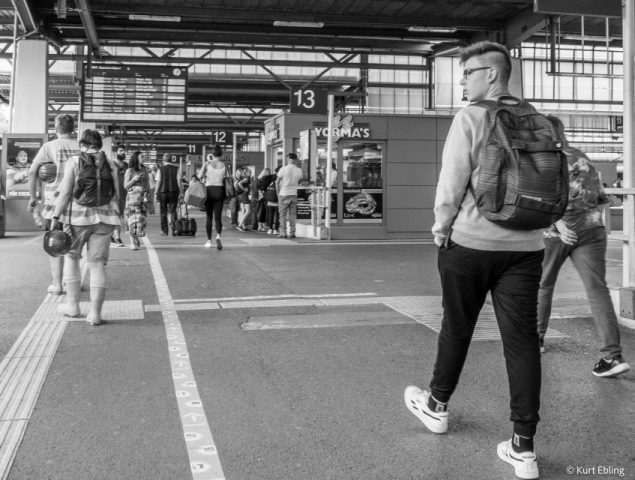 Reisende hetzen über den Bahnsteig, die anderen warten auf den verspäteten Zug – Alltag im Bahnhof, auch in Deutschland. Kann man diese Situation fotografisch festhalten und wie? Und darf man auf Bahnhöfen einfach so fotografieren wie man will?