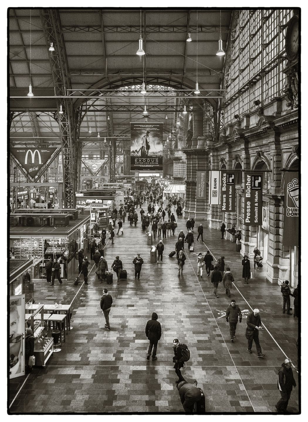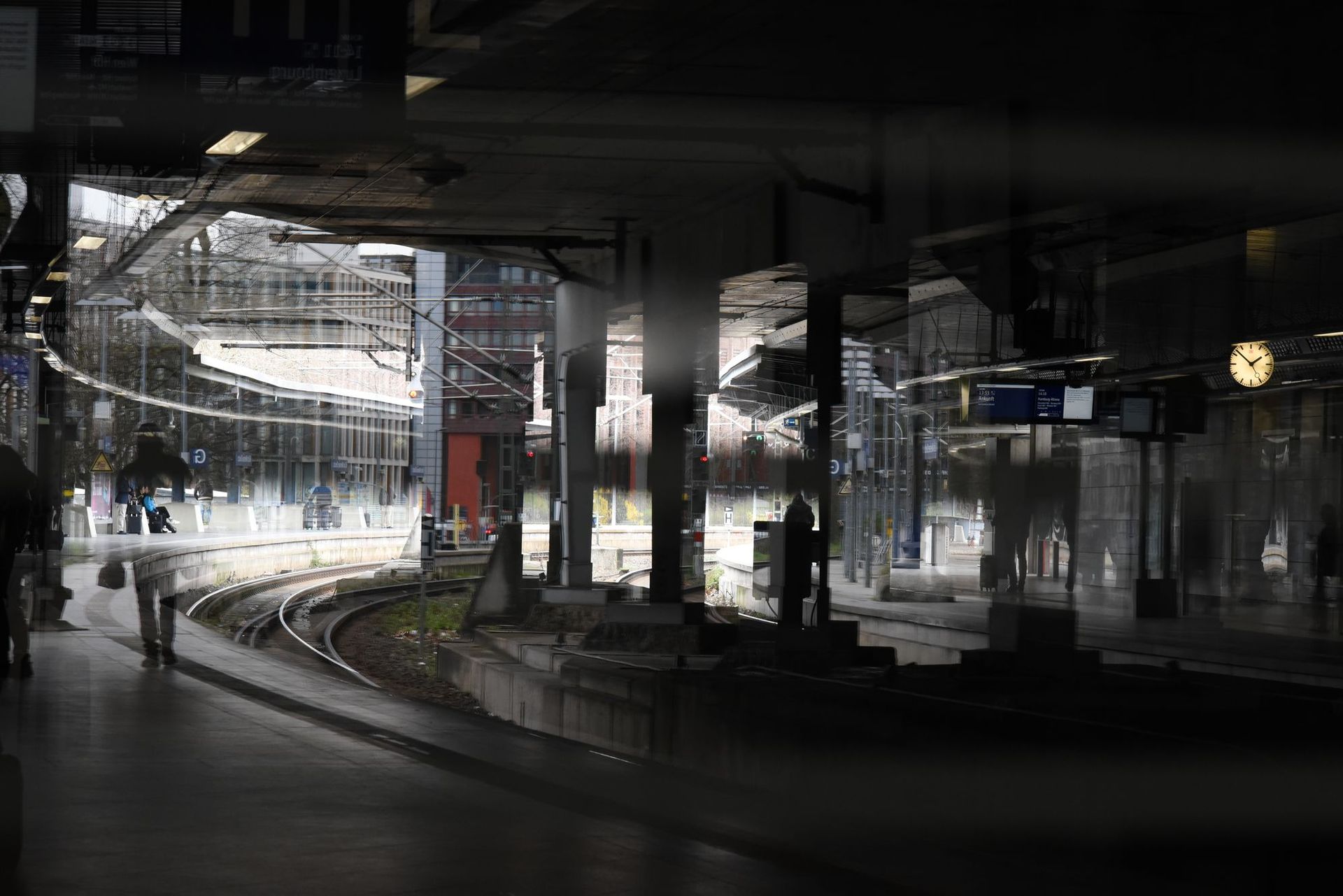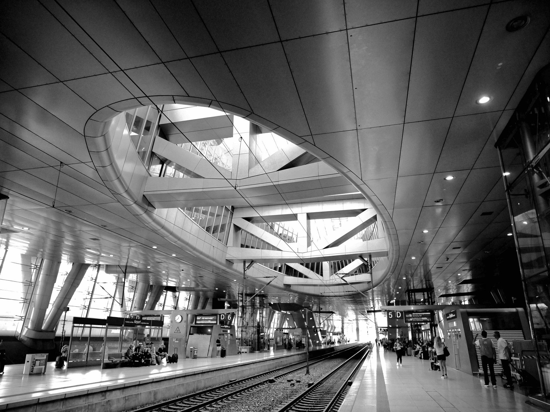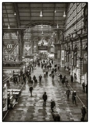 Die Bewegungen von Menschen und Zügen, vor allem auf und an den Bahnsteigen, lassen sich als verwischte Bilder am besten mit längeren Belichtungszeiten darstellen, vielleicht sogar mit Graufilter – je mehr Versuche mit unterschiedlichen Einstellungen, desto besser.